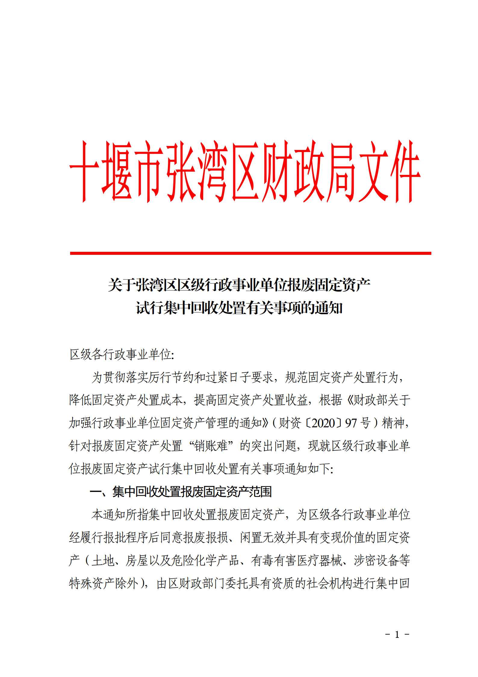 入圍張灣區(qū)區(qū)級(jí)行政事業(yè)單位報(bào)廢固定資產(chǎn) 試行集中回收處置機(jī)構(gòu)。