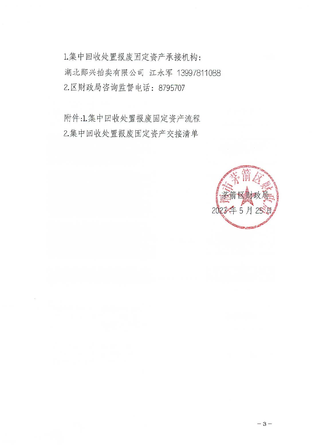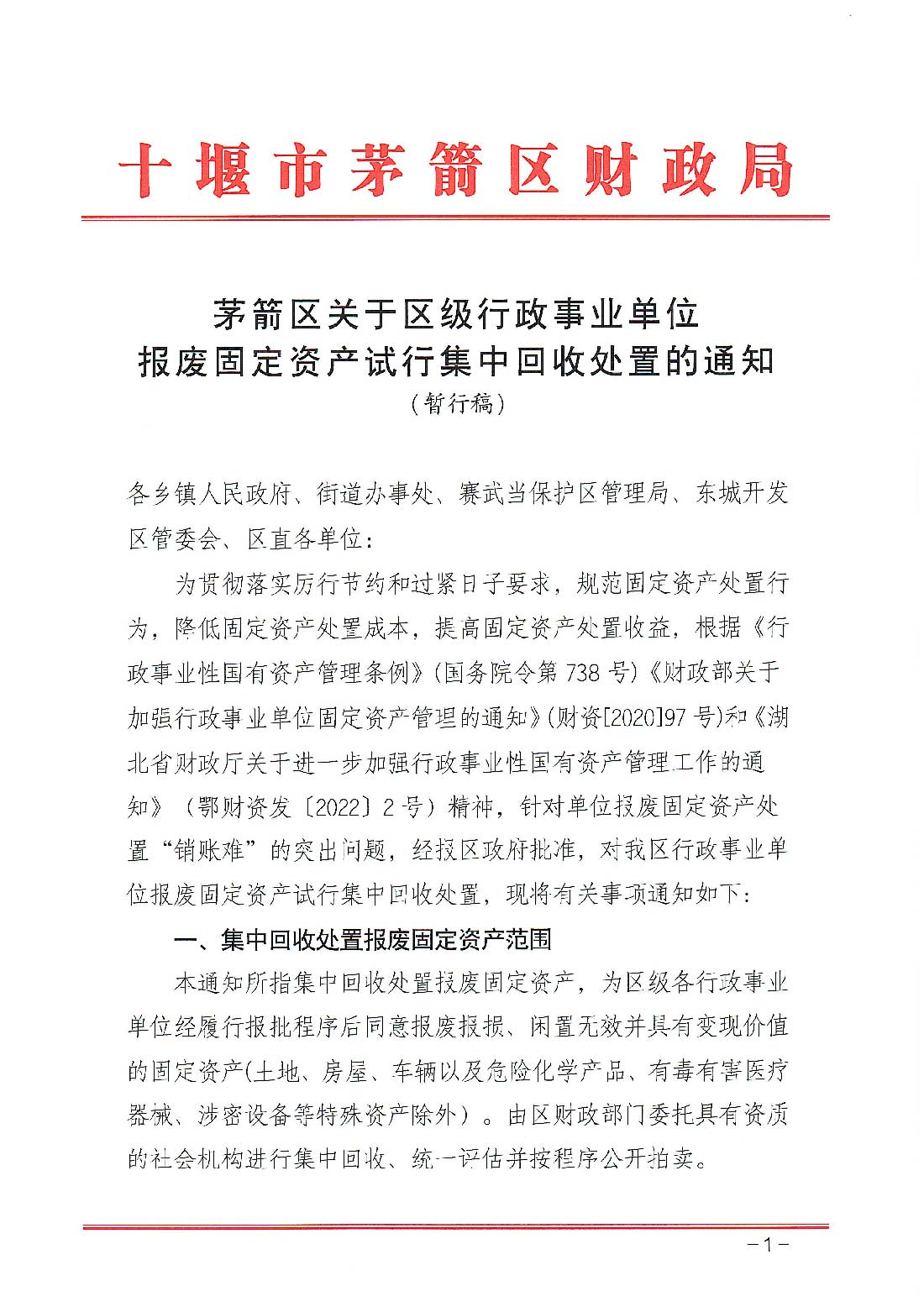 入圍茅箭區(qū)財(cái)政局行政事業(yè)單位報(bào)廢固定資產(chǎn)試行集中回收處置機(jī)構(gòu)。(暫行稿)